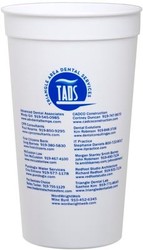 This 32 oz. hard plastic cup advertises your brand over and over again. The smooth snow white surface partnered with your design in 1 - 4 print colors is sure to capture the user's attention. Whether doing indoor promotions (such as trade show exhibits and company celebrations) or outdoor events (like concerts and picnics), the Stadium cup is an appreciated and colorful way to display your name.