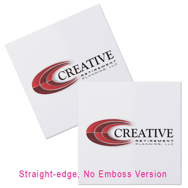 4. Straight-edge (no emboss)When custom-imprinted with your logo, paper napkins deliver life and color to your table presentations. They tell your customers that details matter to you and convey the pride that you take in your business. And printed napkins are not only for restaurants and clubs. They’re for expressing your hospitality at grand openings, sales meetings, anniversaries, new product introductions, trade shows, company picnics – and all other occasions when your firm provides food and beverages.